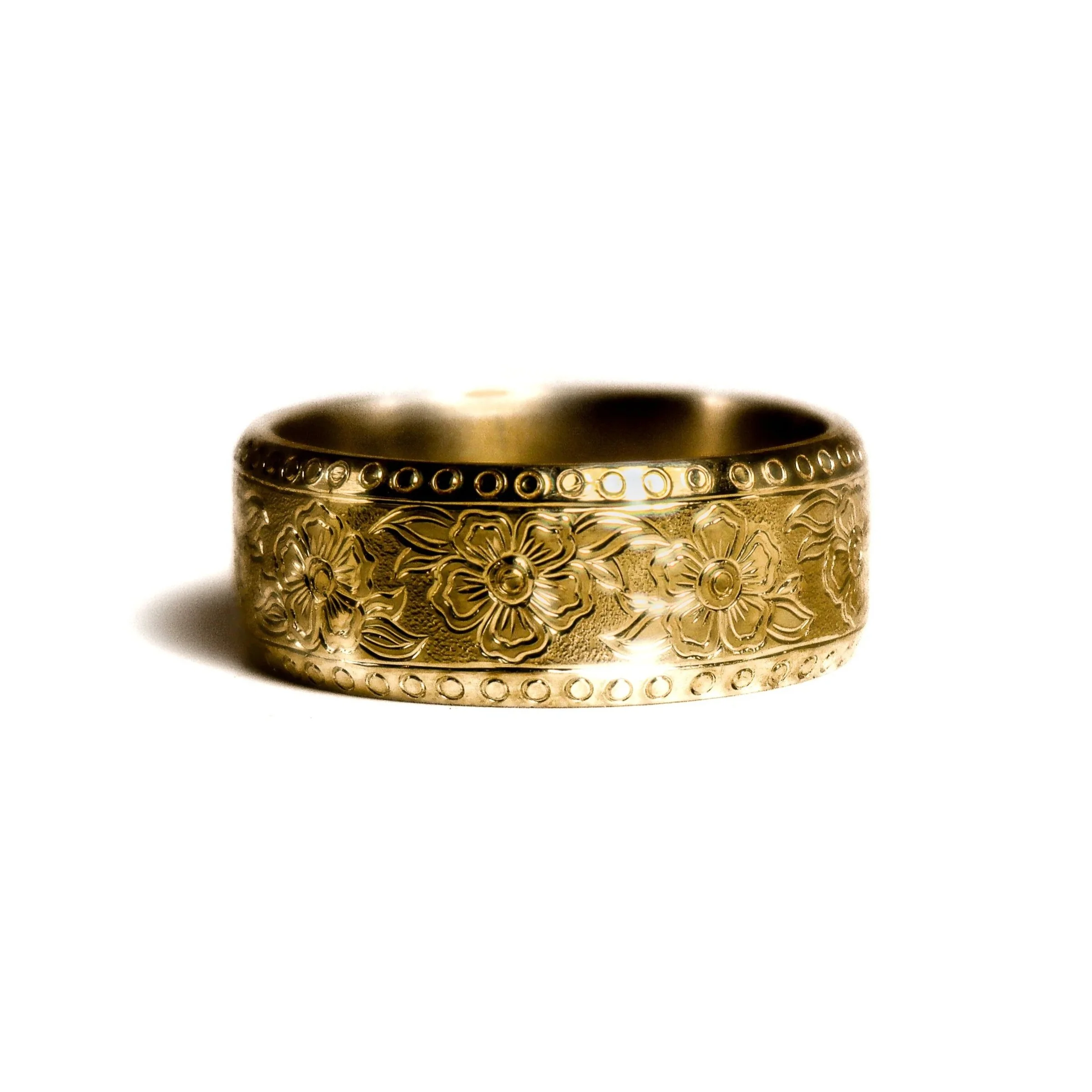 The Customisable engraved wedding band, hand made to order from a lump of solid gold. In true house of bad style each ring is made unique with designs engraved personal to you, just provide the inspiration and we’ll provide the mahi.