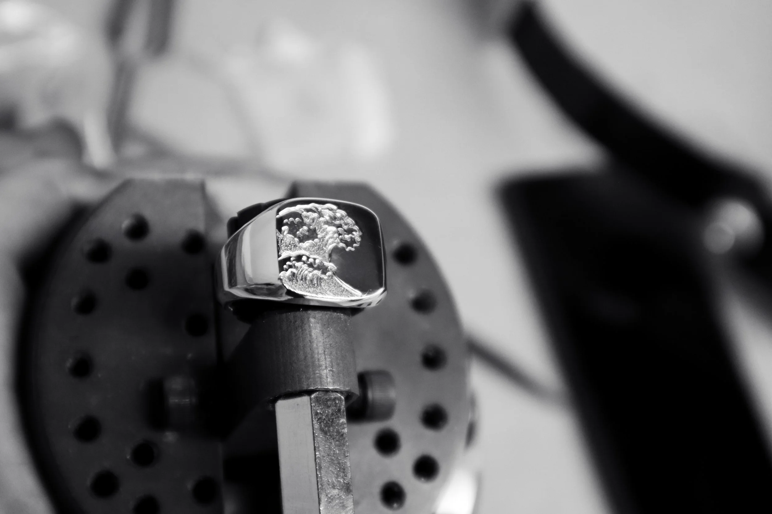 Looking to style up a plain signet with your own design, or get a complete custom engraved masterpiece? HOUSE OF BAD has got ya covered, using traditional techniques metal is cut away using a sharpened metal piece called a graver, doing this by hand gives a deeper longer lasting cut and Is more true to the ideals that the house is about, allowing style and skill to come to form.