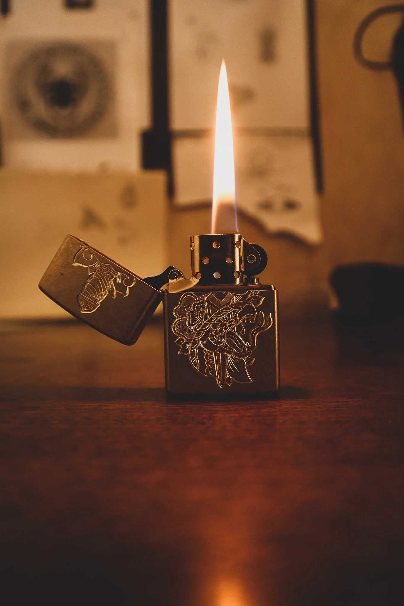 Hand engraved zippo this ones pimped up with the snake, dagger and flower combo.